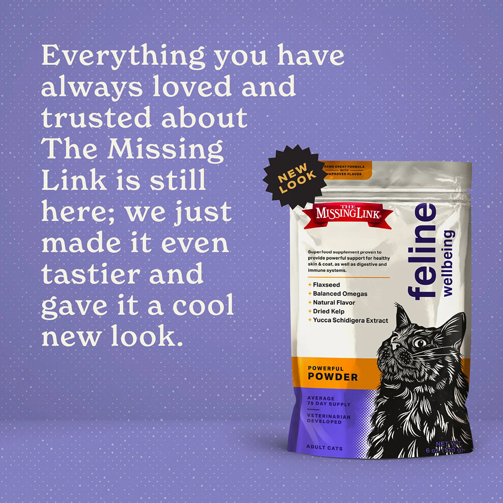 The Missing Link Feline Powder is a veterinarian-formulated daily supplement designed to support your cat’s overall health, vitality, and longevity. Packed with high-quality, natural ingredients, each scoop delivers the power, purity, and performance needed to help your cat live its best life.
