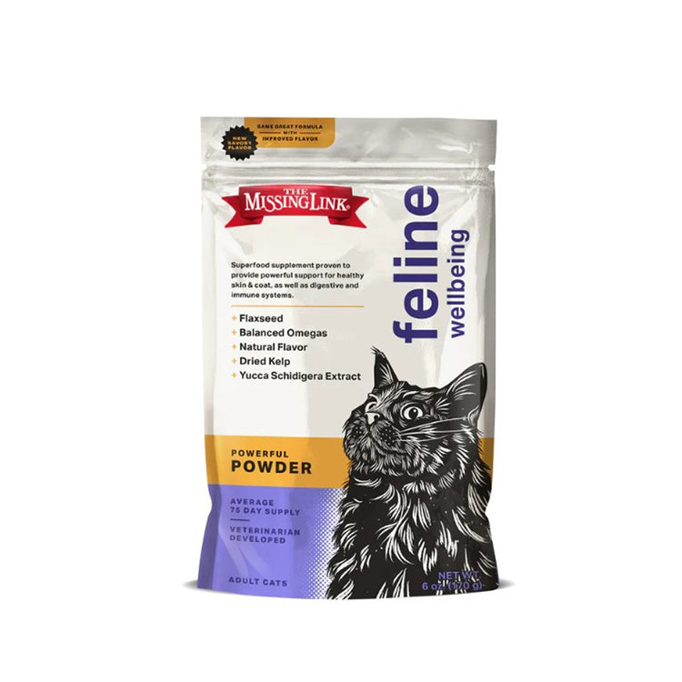 The Missing Link Feline Powder is made in the USA with a patented cold-process manufacturing method to preserve maximum nutrition. NASC-certified, non-GMO, and veterinarian-approved, it offers a safe, reliable, and effective way to give your cat the nutritional boost they deserve.