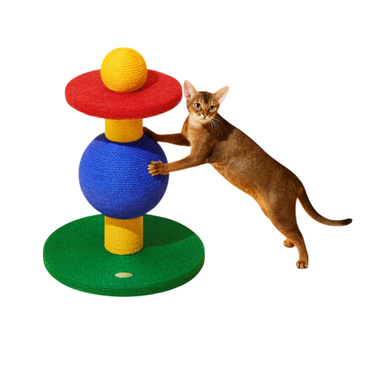 A sculptural twist on the classic post, the Playful Ball design features oversized colorful spheres and a dome top that create 360° scratch zones. Wrapped in natural jute and plush fleece, it offers varied textures for scratching, climbing, and exploring—while standing out as playful home décor.