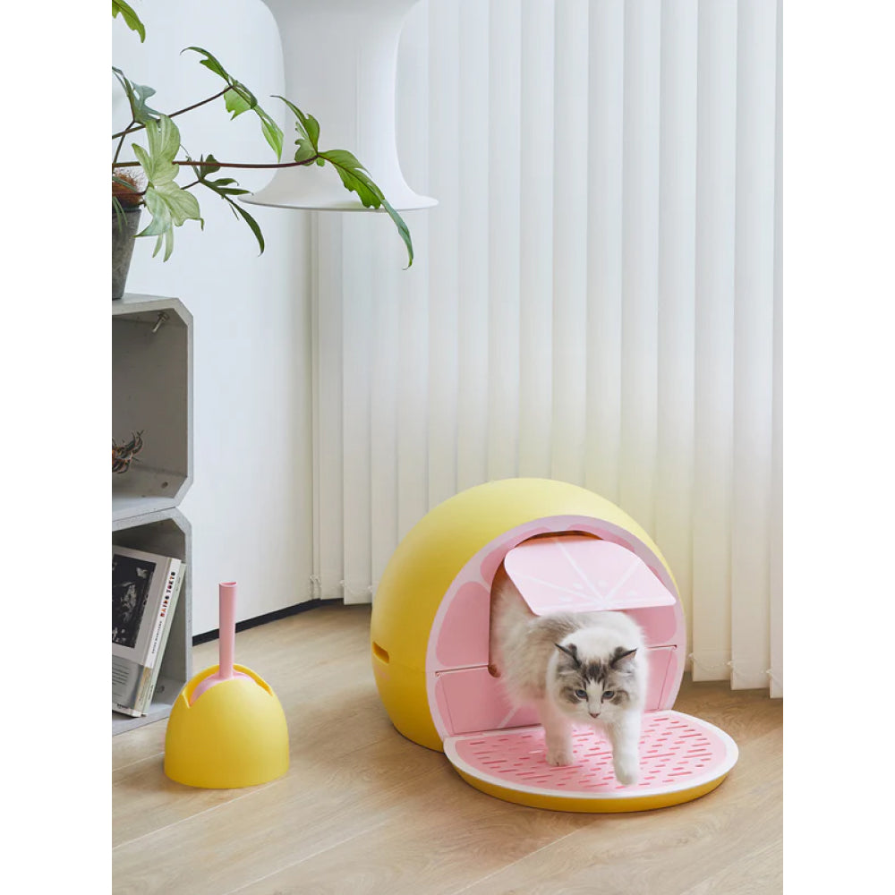 Crafted from durable, high-quality ABS, the Grapefruit Kitty Kove is built to last and designed with odor containment in mind—keeping your home smelling fresh. A convenient scoop set is included for efficient, hygienic cleaning. Whether used solely as a litter box or repurposed as a cozy hideaway, it’s a versatile piece that brings both joy and function to your home.