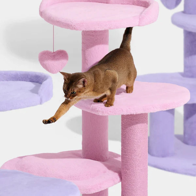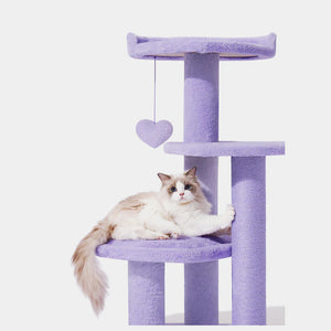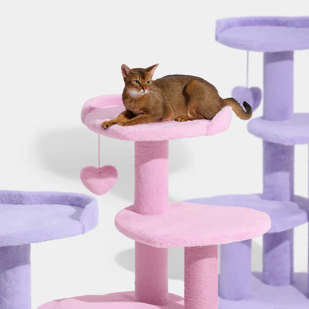 Vetreska Heartpurrple 四層貓爬架以柔和迷人的紫色為主調,結合愛心靈感設計,為貓咪打造一座外型吸睛、功能齊全的專屬天地。這款高級貓爬架集攀爬、抓柱、休息與探索於一身,讓貓咪每天都能享受無盡樂趣。