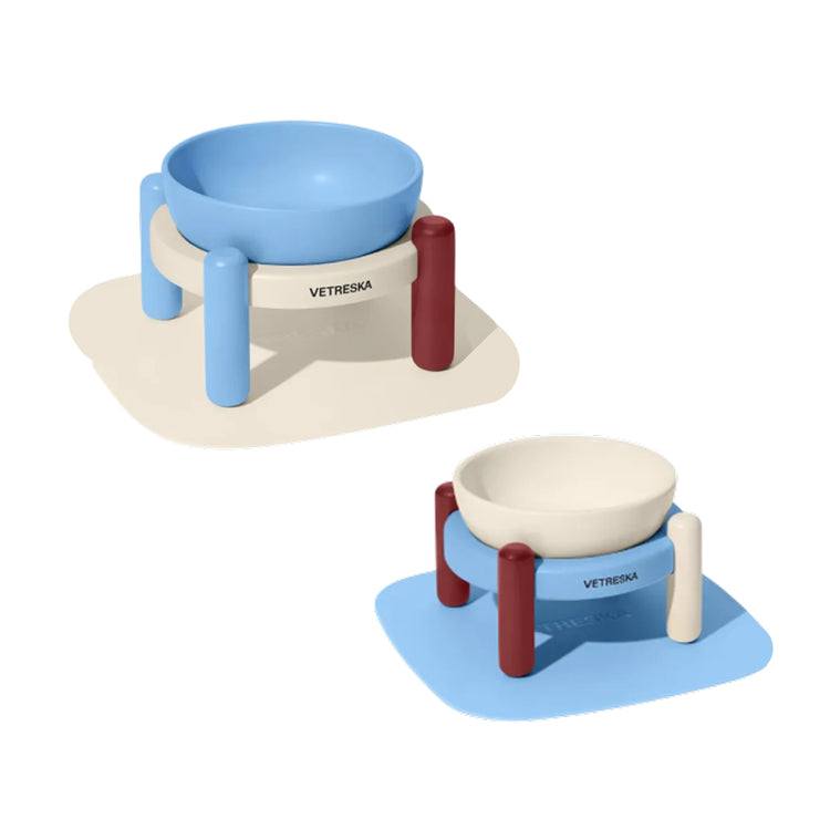 為毛孩嘅用餐儀式增添格調,Vetreska Mist and Merlot 陶瓷寵物碗及餐墊套裝以深沉酒紅同寧靜霧藍色調,展現高雅氣息。高品質陶瓷碗穩固放置於竹座之上,幫助毛孩保持升高進食姿勢,減輕頸部壓力並促進消化。配套矽膠餐墊令碗具更穩定,同時保護地板,保持用餐環境乾淨整齊,減少溢出。