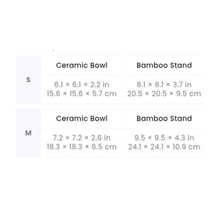 - Stand: Elevated bamboo base for ergonomic feeding posture