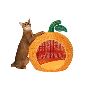 Give your furry friend a cozy retreat with the Vetreska Tangerine Rattan Pet Bed, a whimsical blend of comfort, style, and playful design. Shaped like a charming tangerine, this uniquely adorable bed offers a perfect mix of rustic elegance and modern pet luxury.