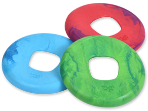 • Center grip hole is great for tug and helps dogs pick up the flyer while on the run