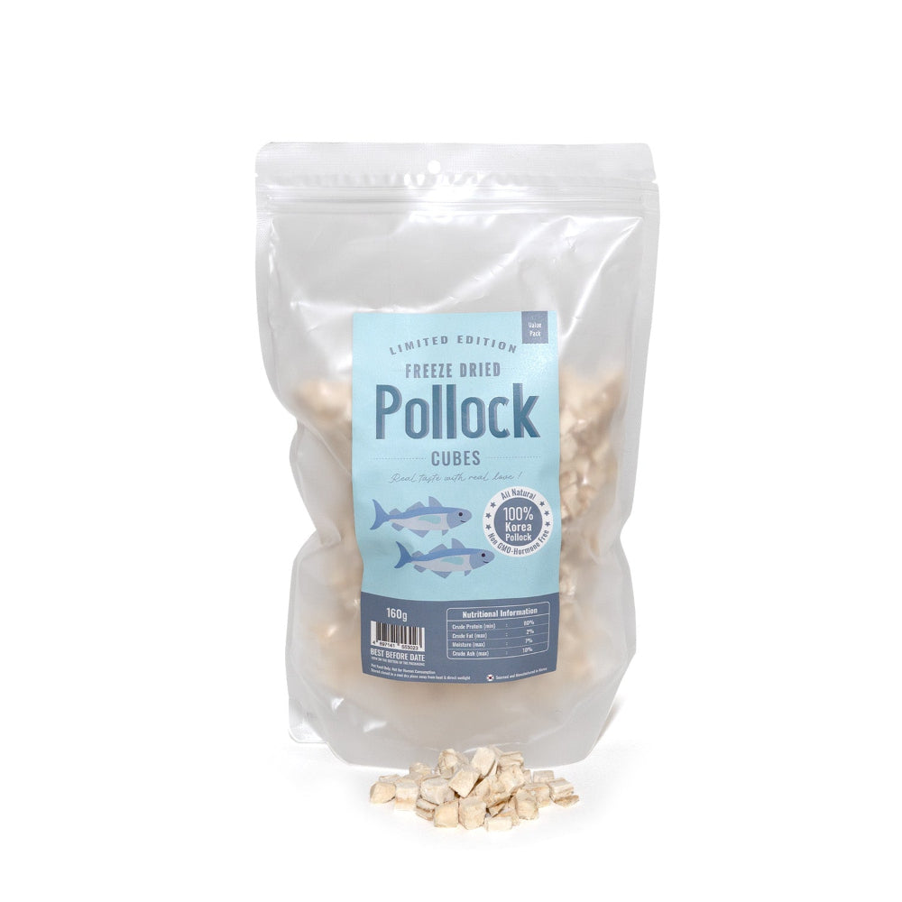 Treat your beloved pets to the delicious and nutritious taste of our 100% Korean Pollock Freeze-Dried Cubes! Sourced from the pristine waters of Korea, these delectable cubes offer a wholesome and flavorful snack that your dogs and cats will love.