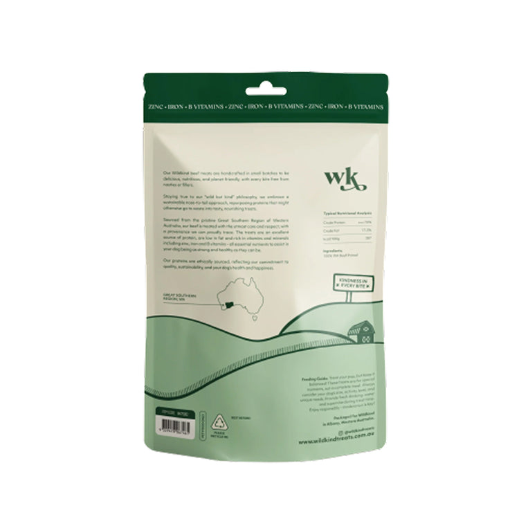 Wildkind 風乾狗狗零食於澳洲西南部製作,嚴選 100% 澳洲單一蛋白質,並以溫和風乾方式保留天然營養與濃郁肉香。配方純淨,不含穀物、填充物或人工添加劑,為狗狗提供高蛋白、自然的美味享受。
