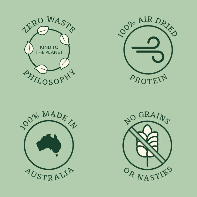 Wildkind Air-Dried Dog Treats are made in the South West of Australia using 100% Australian single proteins, gently air-dried to preserve natural nutrients and rich, meaty flavour. Crafted with a clean and simple approach, these treats deliver protein-rich goodness without grains, fillers, or artificial additives.
