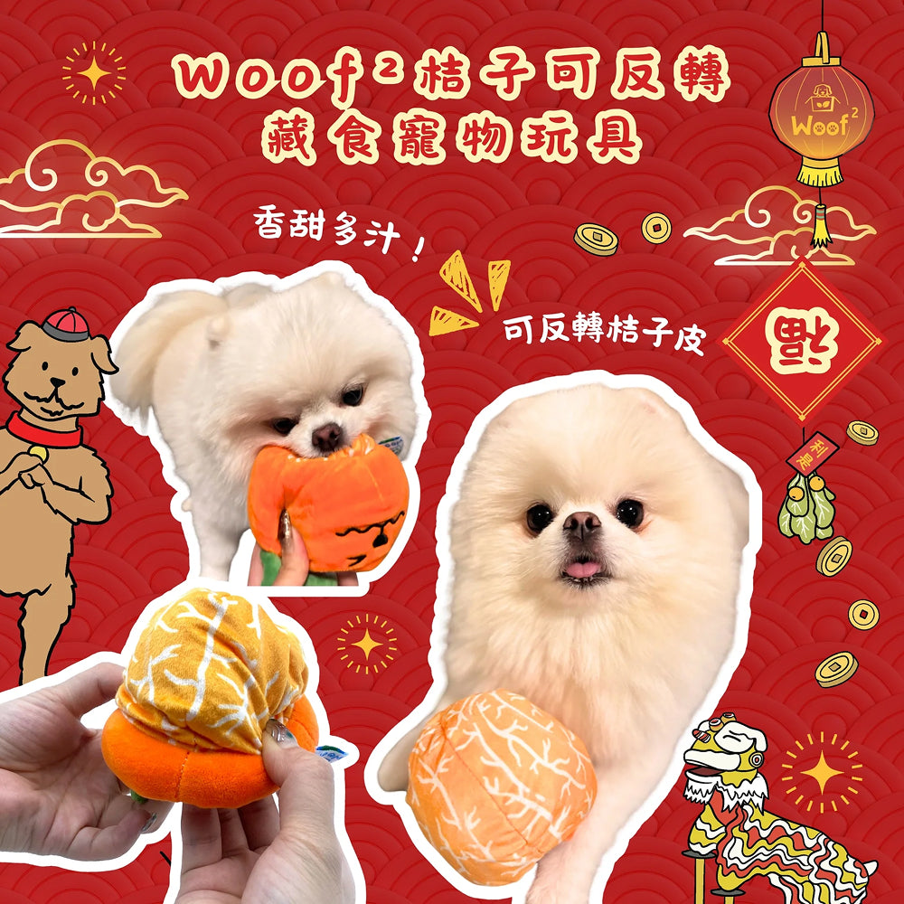 Woof² 橘子造型可翻轉嗅聞訓練寵物玩具以逼真的橘子外形設計,為狗狗帶來富有趣味及探索感的玩樂體驗。可翻轉設計讓狗狗同時享受「未剝皮」及「已剝皮」兩種橘子造型,增加互動性與新鮮感。
