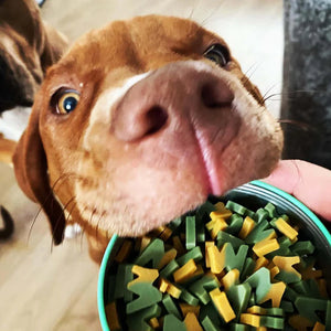 These 100% natural, grain-free, vegan-friendly treats are hypoallergenic and low in fat, making them a safe and healthy choice for dogs of all shapes and sizes. Each bite is packed with delicious peanut butter flavor, naturally colored with nutritious broccoli and breath-freshening apple for an irresistible taste your pup will love.